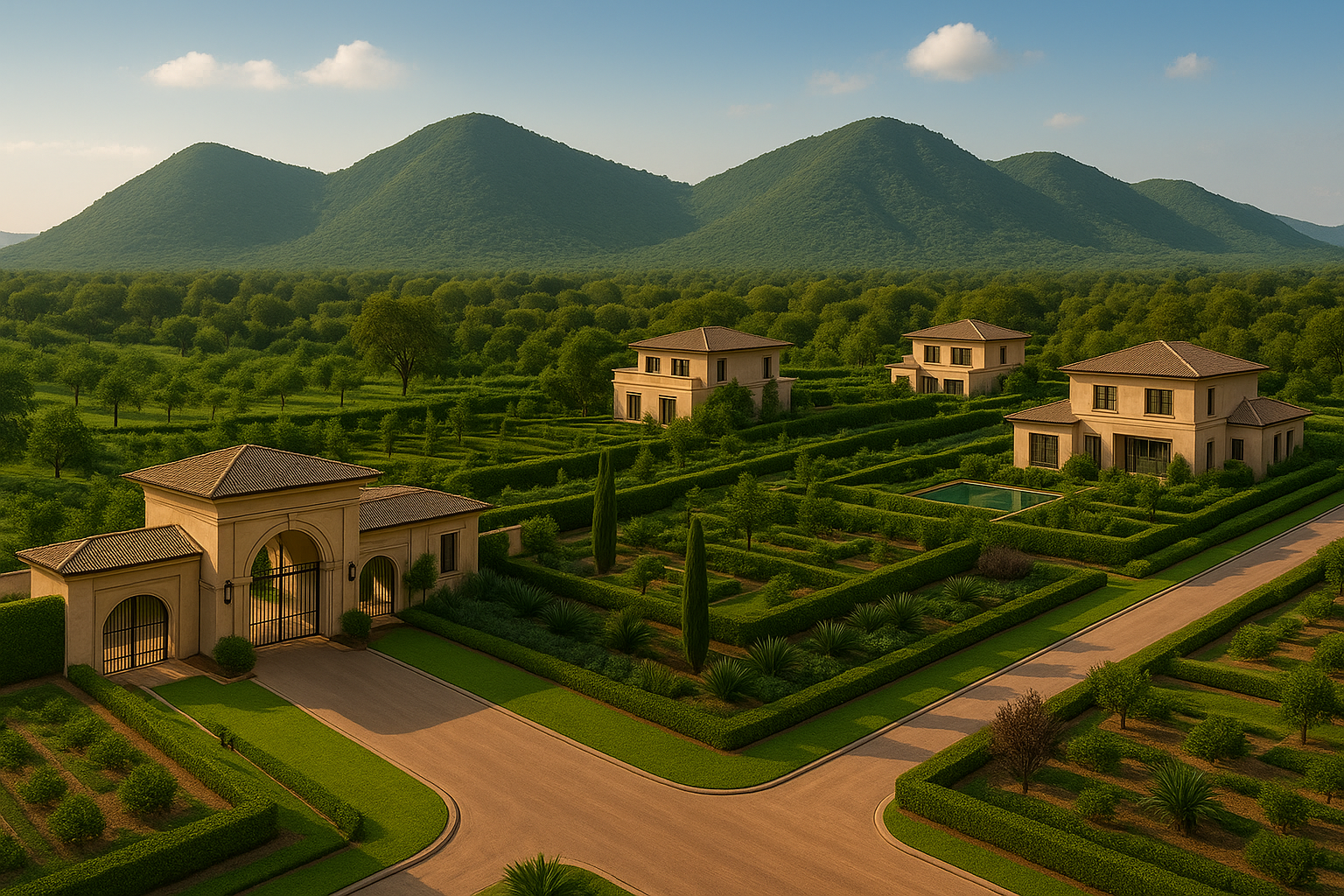 Surrounded by the Aravalli Hills, offering clean air, greenery, and a calm lifestyle.